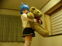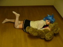 何故か部屋にあったくまさんぬいぐるみとじゃれてます。