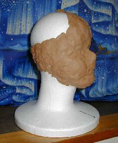 <予定では5月中に原型製造作業を大体終わらせる予定でいたので、大ショック。 柔らかくなったインダストリアルクレイを切り出すのはバターナイフが良いです。切れ易さで粘土の柔らかさ(=熱さ)が分かるのと、金属製なのでまとわりついた粘土も比較的簡単にこそげ落とせます。 加熱しすぎた粘土を直接手にして何度ヤケドしたことか(^^;)特にこの粘土、柔らかいときは手にベチャベチャまとわりついて離れなくなるので更にヤケドが重傷になりやすいです。 バターナイフで切り取った粘土をトルソにこすりつけ、後は指で押しならしていきます。 マネキントルソの台座中央に矢印で黒線を入れていますが、これは正面方向を明示するため。 単色の粘土を盛りつけていくと位置が掴みずらくなり、また利き腕とその反対の腕の力の違いで正面向きがずれてきて、目鼻が左右に振れてしまうことがあります。このため座標を最初に決めています。 大きな面を作る場合、粘土の量が著しく増えます。そうした場合、トルソに、まず布きれ・荒ヒモを巻いて嵩上げをすると粘土作業を減らすことが出来ます。 ただし、整形中にサイズを小さくしたくなり、粘土を削っていこうとしたところ、荒ヒモや布きれが出てきた場合、これらの除去作業に大変な手間暇がかかるので、大きさ見積もりは慎重に行いたいですね。特に美人顔を作る場合は、アゴのラインをすっきりさせたいので、ヒモをアゴから縦方向に巻き付けると後々困ることになります。・・・アスカのとき泣きました、私。 また、布・ヒモは発泡スチロールより粘土の食らいつきが多少悪いので、この場合、加熱温度を高めてやると良いです(ヤケドはしやすくなるけど・・・・)。 |