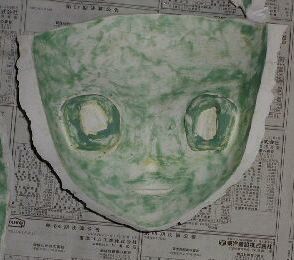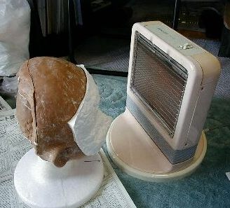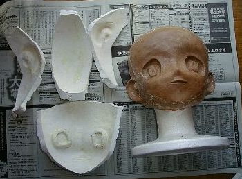 石膏を塗ってから抜き取るまで何日くらい置いたらよいか?実験したことはありませんが、経験から言って一晩(12時間以上)〜2日くらいまでが良いようです。あまり長く放置しすぎると抜き取りにくくなります(石膏が収縮するのか?原型に食い込んでしまうようにも見えます)また、5〜6時間ではまだ柔らかく、もろく、壊れやすいようです。 石膏を抜き取る時は、石膏面を加熱する事によって、石膏と粘度原型の間に残っているわずかな水分、空気を加熱し膨張させ、石膏を原型から浮き上がらせ、外します(蒸気機関の原理みたいなものですね)。 人間が手をかけてむりやり剥がそうとすると、力は局部的にしか加わりませんから、石膏が欠けたり割れやすくなります。一方、加熱した場合は石膏全体に均一に力がかかりますから、むりなく剥がれてくれます。うまく行くと人間が手をかけなくても、加熱するだけで面がポロッと外れ落ちてくれることもあります。 この方法を思いついてからは石膏抜きがうーんと楽になりました。以前は細心の注意を払いながらちょっとずつ力を入れて、少しづつ原型から石膏を浮き上がらせていきましたけど(3日くらいかかったこともありました)、今では30分足らずできれいに外せるようになりました。 ただし、ある程度加熱したら自分の手で外しましょう。たいていの場合、そんなに力をいれずに剥がれてくれます。加熱しすぎると原型(インダストリアルクレイ)が熱によってぐちゃぐちゃになり、抜き取る際に原型を破損させてしまいますから。 石膏型を外して、原型の顔が出てくるときは湯気が上がってたりするんですよね。思わず、「お疲れさまでした」って原型に言ってあげたいような気持ちになります(^^;) |