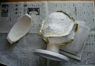 粘度原型から石膏を抜き取る作業はなかなか苦労します(FRPから抜き取るとき程ではないにしても)。石膏が欠けたり、最悪割れたり。あるいは原型が痛んだり・・・私も初めて抜いたときは足かけ3日かけて慎重に抜きました。 だから、なんの苦労もナシに、勝手にかぱっと外れてくれるなんて、ハッピーな限りなんです。 |