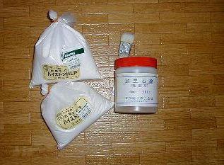 石膏は樹脂入り石膏を使いました。 吉野石膏ハイルストンHLP 1050円 今回はシンジ面制作時の余り1/2と今回の面用に買った袋の1/2を使いました(詰まるところ、丁度一袋分使ったことになりますね)。 この石膏は値段は少々高いですが強度が強いため、型取りに向いています。今回は最も薄いところで3mm程度の厚さの所もありましたが(意図してこんなに薄くしたわけではないので、FRP抜きの時がかなり心配です)、壊れることなく抜けました。ホームセンターにも石膏は売っていますが、これは強度がかなり弱いため、かなり厚く積まないと壊れてしまいます。 実際FRPで面を作る際に、この石膏面の強度が弱くて作業途中で壊してしまうということをよく聞きます。このため私は失敗無く抜けるよう、強度第一で、値段には目をつぶって樹脂入り石膏を使っています。 また、石膏を付ける前に石膏と粘土原型の剥離をよくするためにカリ石鹸を原型表面に塗ります。 カリ石鹸500g 860円 ・・・・が、別にカリ石鹸でなくても、普通の石鹸でもいいみたいです。我流で面を作っていた私は、当初そんなことは知る由もなく、ハンズの店員さんに教えられるまま買ってしまいました。 これまで10回石膏型取りをしてますが、まだ容器の1/5も使っていないんです。ああ、お金勿体なかったなぁ・・・・ 新聞紙を丸めたものが3本交差して写っていますが、粘土原型が転がらないよう固定しています。 写真中では石膏をたらした所を撮っていますが、実際にはどんどん石膏を塗りつけていきます。部分的に乾燥すると、石膏面にその痕が残ってしまうからです。 それと言わずもがなですが、石膏は水とよくまぜておかないと、ダマの部分が出来て、そこを起点に割れてしまいます。 一方で原型は立体的に出来ていますから、水を混ぜすぎるとダラダラ垂れてしまい、表面に盛りつけていけません。 どの程度水を混ぜたらよいかは経験を積むしかないですが、私の感覚で行くと、タコ焼きの小麦粉より気持ち水分少な目くらい・・・が良いかと(^^;) それと、カナキリの仕切の間から石膏、水が漏れてしまうため、私は継ぎ目をセロハンテープで目張りしています。 徐々に乾燥してくると、樹脂入り石膏の場合、表面が磨いたガラス質のようになめらかな感じになってきます。 けれども、表面がなんとなく粉っぽかったり、ざらつき感があるときは水との攪拌が少なかったときです。こうなってしまった場合は石膏がポーラス(軽石状)になっていて強度が弱くなっています。原型から抜くときは細心にも細心の注意を払いましょう。 |