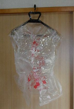 この簡易トルソの作り方は素材屋龍之介さんに教わったものです。LINKページに素材屋さんのHP「The-3rd Lab」もあげています。ここに行けばより詳しい作り方を教えて貰えるかも。 素材屋さんには胴体だけでなく、太股あたりまで作ったトルソを見せてもらったけど、なんかポンペイの遺跡の人体を見るみたいで、ちょっと怖い・・・(^^;) 簡易トルソ作成には、またしてもゴミ袋を使います。ゴミ袋に頭と両手を出せるよう穴をあけ、それを被り、胴体部に羽織ります。そして、胴体部分を透明梱包用のビニールテープでぐるぐる巻きにしていきます。これを何重にも巻くとコチコチになり、体の形がしっかり固定されます。 そして、適度な強度をもったところで、切り開き、脱ぎます。あとで、切り開いた場所をテープで固定・閉じて、完成です。 これで、自分の胴体形状を立体的に再現できる簡易版トルソの完成です。 脱ぐために、切り裂く際は自分の体まで切ってしまわないようにくれぐれも御注意を。 |