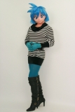 まずはメイアのボーダーチャニックにヘアカラーを合わせた衣装で。