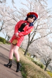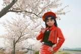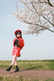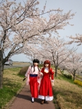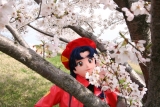 場所は河川敷の遊歩道沿いにある細長い公園緑地で撮影していました。これだけ桜が咲いていて、あまり人がいない良い撮影スポットです。桜も並木のように揃っているところや、一本だけ離れているものも有りで結構変化に富んでいます。足元も舗装されててしっかりしていて、階段の段差もゆるやかなので着ぐるみ撮影にはもってこいの場所でした。