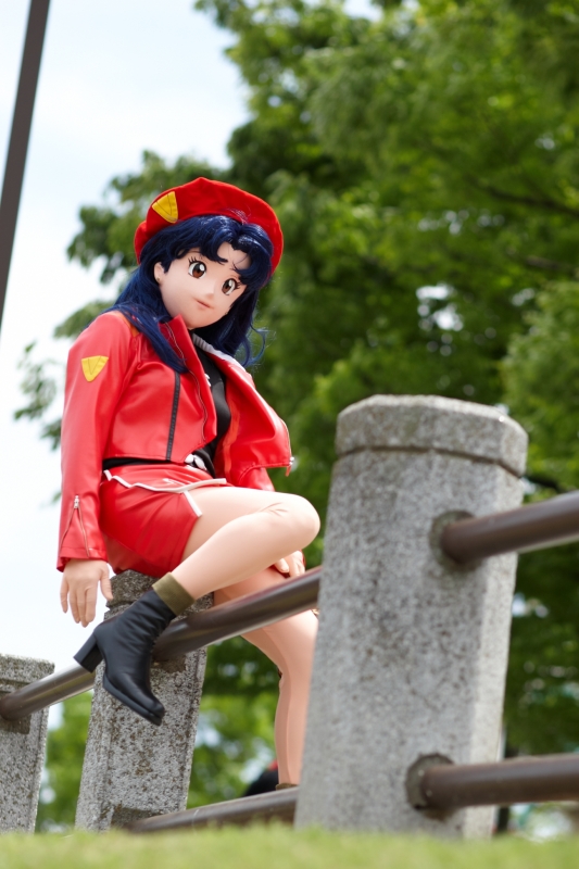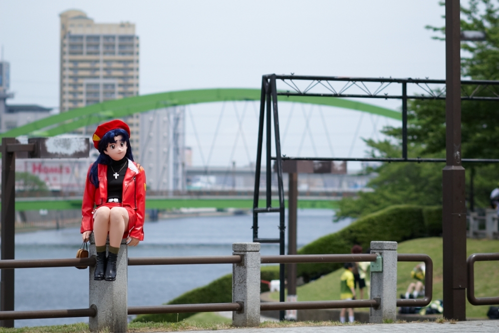 ここは遊園と隅田川の間にある遊歩道なんですが、遊園地内というわけじゃないようですね。一般の方が・・・まぁこの写真のように乳母車が通ったり、あるいは自転車が行き来してたりします。自転車に乗ったお父さんが立ち止まっては引き返しミサトの脇を通り過ぎ、また立ち止まって振り返ってきては戻り・・・としておられましたが。「あ、パチンコの人だ・・・・」と思ってたんでしょうかねぇ、長らくミサトの様子を伺っていまして。でも近寄れないみたいなんですよね(笑)。近くに寄ってきていただければ握手くらい出来るのに。