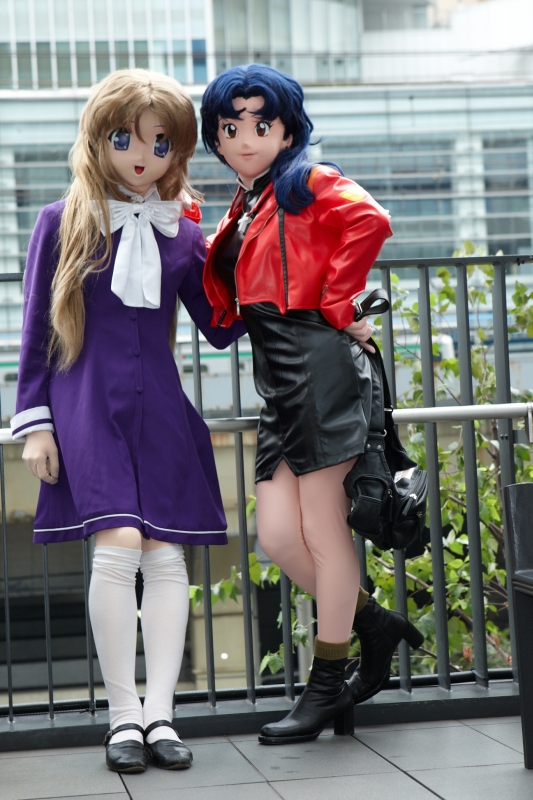 ’10.10 秋葉原コスプレ天国 ![]() 秋葉原のど真ん中、秋葉原UDXにてJCFとコスプレヘブンがコラボでコスプレイベントを開催! 秋葉原への外出も可能。 撮影ももちろん可能。 という、うたい文句のコスプレイベントがあるのを発見しまして。 「ほえ? アキバで屋外に出られるの!?」とびっくり。 以前から秋葉原でもコスイベントが開催されているのは知っていたのですが、内部だけですので、「交通の便が良い」というのがアドバンテージかなぁ、くらいの認識でいてあまり食指が働かなかったのが実態でした(勿論、中に撮影向けの綺麗なところはあるにしても、まぁ、どこのイベント会場でもそこそこ撮影スポットはあるということで)。 無軌道に秋葉原の町中を闊歩するつもりはないにしても、一般の人にも「こんな遊びもあるんです」と、着ぐるみを見て貰えるチャンスと思いまして。 しかし、HPを見ても上記文面しか無くて地図も無し。一体どの辺まで行けるのか皆目見当も付かず。 イベント主催にメールで問い合わせしたところ、 必要な外出や、秋葉原に来た記念に数枚の写真を撮るといった日常生活の延長線上の外出を 個人の責任で行って頂けるのでしたら外出も問題ないと考えております。 会場としての屋外範囲はUDX 2階のイベントスペースと付随するテラス部分です。 と、返事を頂きまして。これ、「外出可能」というより、「外出も不可能じゃあない」というニュアンスで言ってるような。 (・ω・;) 私はメールで問い合わせしたから概略掴めましたが、こんなことHPのどこにも書いてないから、HPの文面見て町中へぞろぞろ繰り出していっちゃうと思うけど。。。と思って、おせっかいにも私のHP上に情報upしていたのは過去の(10月の)日記見ていただければお分かりかと。 (でも当日、やっぱり町中に繰り出しているのを帰りがけに見ました) とまれ、UDX敷地内でちょいちょい写真撮って貰うくらいなら、なんとか、と思って行って参りました。 実はこの日の午前中は、秋葉原へ出向く前に都内某所で新しい娘の小物、衣装諸々含めた開発製造について密談をして参りまして(w 開発にGoサインを出してから秋葉原に赴きました。 11時過ぎ秋葉原駅に到着。その後酒井もぽとさん、ぱっどさんとたかさんに相次いで合流。たかさんはぱっどさんのお知り合いで、この後同行させていただきましたが「TAKA」と「たか」で紛らわしいことしきり。更にこの日はみさとみなとさんも来ていたので、「みさと」と葛城「ミサト」でまたややこしく。ぱっどさんが撮影している折に私をレンズに向けようとするとき、しばし呼びかけ方を困っておりました。 (^^;) 以下、ぱっどさんに撮影いただいたものです。 ![]() 「秋葉原に来た記念数枚」の写真です(w バックに秋葉原駅。 で、手すりに寄りかかってたら、下から見上げていた人達がいたので手を振り替えしてました。高いとこから見下ろしちゃってごめんなさい。 ![]() このあと可能なら下のUDX敷地内に降り立ちたかったんですけど、それも結局しませんでした(あとで行けたらと思っていたのですが、物凄く混んできてしまって)。 その後、どこか落ち着いて撮影してもらえるところはないかなと、屋外撮影スペースやらUDX内をしばらくまわってきました。 UDX内西側、山手線に隣接したエリアに撮影スペースが確保されていまして。そこでちょこちょこと。 ![]() もぽとさんの結センセと小声で密談中(^^) 「ん? あ、はいはい。カメラ向けばいいのね?」 (w ![]() ちなみにもぽとさんは当初、この会場があまりに「町中過ぎる」ので引いておりました(w なんとかかんとか結センセに着替えて出てきたものの、出てきたときに示したいつもの拳を突き上げる決めポーズも心なしか元気有りませんでした(^^;) その後UDX内を歩いて廻っていたのですが、内部は大分暗くて。また、一般の方もいるので、片っ端からバシャバシャ、フラッシュを炊くわけにもいかず。 もっとも、躊躇する私らに対して、周囲の一般の方々は私らをバシャバシャ撮ってまして。 それを全部受けてると往来の邪魔になってしまうので、あたふた右へ左へとダッチロールのようにUDX内をうろうろと。 往来の邪魔にならないよう、お互いある程度離れていたんですけど、離れすぎて一時UDX内でミサト一人だけはぐれて迷子しまして。 (^^;) 一応、UDX内は「往来可能」なはずんですが、あまり周知されていなかったみたいで。ミサト一人でうろついてると、いよいよ目立って、周囲から物珍しげな視線が注がれて。 いやあ普通の人みたく着ぐるみで闊歩するのは大好きなんですが、何故でしょうねぇ。閉鎖空間内だと妙に気恥ずかしかったですねぇ。なんでだろ。 最初から一人で来たならずっと最後まで一人でもOKなんですけど、一応スタート時点ではぱっどさんらもいたので、心配かけちゃいけないですしと、探し回ってなんとか合流。 合流したとこがここ。 UDX中央の吹き抜け階段。いいでしょ?(^^) ![]() 実は着ぐるみ始める前