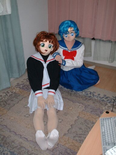 なつきさんと直接お会いするのは今回が初めてだったんですけど、なるさんはすっごくかわいくて見とれてました(^^)写真撮影の合間合間に、2人で交互にキーボード叩きながらチャットやったり、キャピキャピしたり。気が付けば明けがた4時頃まで着ぐるみしていて・・・・(汗)。楽しい時間はあっという間に過ぎちゃいますね〜。