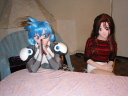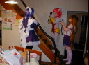 1Fダイニングでくつろぐメイアとみなとさん。しかし、min.さんの亜美ちゃんは徹夜の運転のせいか、いきなりコタツで着ぐる寝して、お疲れ?(^^)いえいえ、このあとしっかり復活していました。この頃からみんな一斉に着替え始め、会場内は一人、また一人と人間が姿を消し、人形が増えていきます。