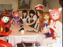 丁度このころ到着したbeckさん。いきなり3体の着ぐるみに囲まれて硬直してました(^^;)いやー、そういうの見てると余計にからかいたくなって、わざとベッタリ寄りそってみたり。首もとをすーっと指でなぞってみたり。