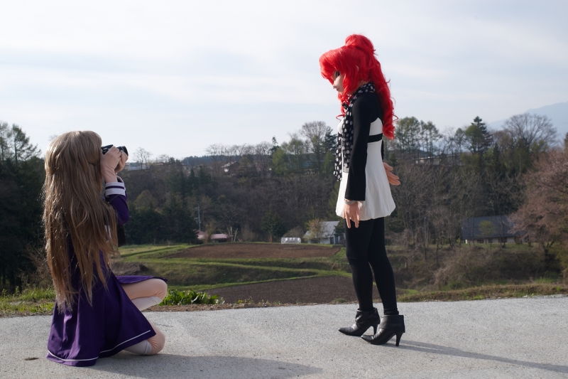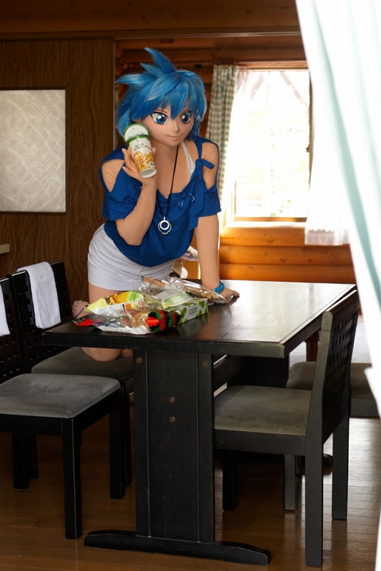 いきなりどーん!![]() ミズーの手にする一升瓶はもぽとさんの持ち込んだ銘酒獺祭(だっさいと読みます)。 主にもぽとさんとぱっどさんがクィクィ飲んでいたんですけど、一升瓶ですからねぇ。これを二人二晩で飲みきるのも結構大変、それに酔いも加わって、段々怪しいというか大らかになってきて。夕方、前夜の焼き肉の残りに追加発注した食材をくわえて二夜連続の焼き肉パーティーになったんですけど。最後の締めの焼きそばで二人が怪しいことをおっぱじめました。 「焼きそばに水の代わりに獺祭入れてみネ?」 なんと畏れ多い! これほどの酒を定価¥200あましの焼きそばに混ぜるぅ!?! 酒造元が知ったら号泣されること必至な暴挙ですな(^^;) えっ!? えっ!? という間に一升瓶を逆にして、ざーっと。 「へい! 酒蒸し焼きそば一丁上がり!」 哀れ焼きそばごときに混ぜられてしまった獺祭でしたが・・・・うむ! ムチャ旨い! コクがあってうまみがあって、どっしりとした品格のある焼きそばが出来ちゃいました。いやぁ、さすがというか、こんな旨い焼きそば食べたこと無いというくらい、絶品な焼きそばでしたわ。これは良いモン食べさせてもらいました・・・・あれ? あれ? ・・・・れれれ? にわかにぽーっと全身が火照り、めがとろーんとしてきて、ほへーはひーふほー・・・・ 寝ちゃいました(爆) 「うそだ、絶対ありえねえ!」 (もぽとさん談) 十分加熱したからアルコールは飛んでるというのが、もぽとさんの主張。それを裏付けるかのように私以外の三人は何事もなくフツーに起きてらっしゃる。 私、アルコールがちょこっとでも入ると寝ちゃうのですが・・・・アルコールが無いはずなのに酔う? そんなはずはない! いやいや、あったんです! 獺祭があるから私は寝ちゃったんですぅ! もぽたんの理論よりわたしのからだが存在を保証してる! (>◇<) しかして、私は「超高性能アルコール検知器」とか「焼きそばに酔う人」とか色々言われながら、この後眠い目をこすりつつ着ぐるんだのでした。 眠いくせに・・・それでも着ずにはいられない。ドーラーの悲しい性ですな(嘘) そして眠気覚まし(?)にミズーのぶらっく団姿が登場。 ![]() 背後流し台には焼き肉パーティー後の方付け食器が(w ![]() およそログハウスにこれほどミスマッチな衣装もないでしょうなぁ(^^;) 自分でやっといてなんですが。 ![]() 酔った勢い?で、胸元ジッパーがつつつ・・・・ (爆) でも、よい子はここまでよん(^^) そして、ぶらっくな方がもう一名。 ![]() ![]() ![]() こんな衣装も用意してきてましたけど、いずれご本人のHPでもupされることでしょう。 ![]() そして再びあけりん登場。この頃am2:00くらいでしたかね。 ![]() この頃am2:00くらいでしたかね。 酔って中途半端に夕方寝ちゃったせいで、この頃私はモーローとしておりまして、よくおぼえてません。 ぱっどさん撮影のかーいい画像を後で見て・・・うーん、確か寝ちゃってたよなぁ(^^;) 獺祭に敗れた(w ![]() ![]() 昔さくらちゃんで同じようなことをやった(^^) その代わり、翌朝は早くから目が醒めました! 前日はあけりん&不二子嬢でロケった場所へ、ミズー&ゆいセンセでam6:00から行ってきました。 ![]() ゆうべの妖艶なぶらっく衣装から爽やかな春の装いへ(^^) ![]() バックにうっすら見える雪山は南アルプス甲斐駒ヶ岳(標高2996m) ![]() こんな風に撮って貰ってましたー(^^) しかし、執念で撮りますのぉ・・・・ファインダーなんてほとんど見えないでしょうに(w ![]() ![]() 時刻はam7時を廻り、ぼちぼちお時間かなーと。ロケ地より帰投してからも名残を惜しんで別荘周辺で更に数枚。 ![]() ![]() ![]() かくしてミズーもこれにておしまい。この後、着替えて撤収の方付けにはいるのですが・・・・ 10時チェックアウトなんですが、8時ちょっとには撤収作業完了しちゃっいまして(w 大体着替えって、20分もあれば出来ちゃうじゃないですか。 オフ終了のつもりが、かくしてもう一回メイアをひっぱりだしました。我ながら元気すぎ(いや、ゆうべ早く寝ちゃったし) ![]() 「はい! 余ったお菓子、欲しい人持ってって!」 片付いたテーブルに余り物の菓子が。みなさん荷物もパンパンなのでなかなかお持ちにならない。かといって幹事責任で私が持ち帰ると、それを食べてブクブク太っちゃうしぃ(w 余り物は懸命に参加者間で押し付け合いになります。たはは・・・・。 (^^) ![]() ![]() このアウトフィットはお気に入りです。ずばり3年前に買ったものなんですけど、着ぐるみ以外で日頃着ることはないし(^^;)着ても肌タイの上に着るので全然汚れてませんし、痛んでもいない。なので、とっても綺麗なんですが・・・ファッション服を3年も4年も引っ張れませんよね。今回が最後かなぁ。 ![]() 念のため言っておくと肩口が破けてるわけじゃないですからネー(^^;) こういう服なんです。 最後、もう一度だけ外に面した道端に出てみました。 ![]() そうしたらメイアを見て、ちっちゃな男の子が一目散に駈けてきました。 「あっ!あ