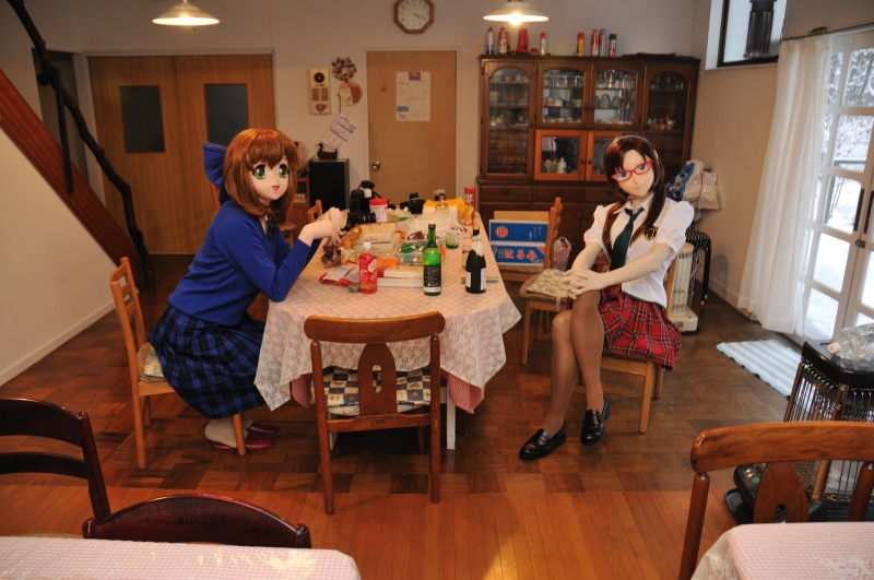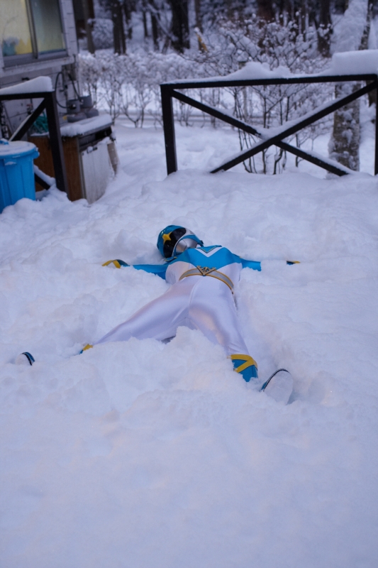 と、言うことで記憶もかなり飛んでて、写真中心のレポになってしまうかと思いますが、写真が今回良いんですよ。参加した皆さんに良い写真撮っていただいて、これは見て欲しいという写真がいっぱいです。 (^^) 幸運なことに、オフ会当日大雪警報が出る程に雪が降りまして、オフ会会場の貸別荘に到着したときはこんな感じで雪がどっさり。 オフの直前まで、この冬は雪が全然無かったのですが、せっかくの真冬開催のオフですからそれらしく雪はあって欲しいんだけども・・・と思っていたらおあつらえ向きに雪が降りまくって。 私、これまで2月のこの時期は基本オフ会は開きませんでした。雪で交通が途絶されて来れなくなってしまうとか、インフルエンザの流行とかリスク要因が多いので。でも、皆さんの「やりたい!」の声に押されて開いたんですが・・・良かった良かった。雪はどさっと降ったのですが交通機関に極端な影響は出ず、インフルエンザで体調崩した人もなく(私自身がちょっち風邪っぽかったのですが、大過なく)、円満にオフ開催が出来ました。 この日の開場は11時だったのですが、お昼頃には既に初日参加者がほぼ揃ってしまいました。 超早い集合! (^^;) 遅いときは全員揃うのが21時とかもあるのに(^^;) 初日からの参加は私、ぱっどさん、たまきゅうさん、悠さん、彩弧さん、東鉄さん。それにオーストラリアから来日中のケーシーさんとダニーさんもやって来て計7名。 お昼を近所の蕎麦屋さんで食べて、集金にいらしていた貸別荘オーナーにお金をお渡しして、早々に着ぐるみ開始・・・ですが、外はまださんさんと雪が降っていますのでとりあえず室内でまったり行こうと。 ![]() 左側、ケーシーさんのゆきえさんと、右側たまきゅうさんのマリさん。撮影はダニーさん。 いきなり日豪のハイレベルな組み合わせ(^^) ヨーロッパ系のケーシーさんは勿論、たまきゅうさんと二人して日本人のレベル越えた長い手足にスレンダーなボディは凄いカッコイイのだわん。 そんなハイレベルな室内と打って変わって室外には馬鹿が1人(^^;) ![]() だ、だって雪いっぱいなんだもん。雪かきしとかなきゃ、自動車が埋まって出れなくなるし、外でロケするにも大変でしょ?(^^;) と、思ってたら更に一名正義の戦士が外に出てきた! おお、カクイイ! ![]() ![]() なんだ、ポーズとってジュース買いに出てきただけか? ![]() む!? 俄然やる気を出した? ![]() いや、あなた何しに外に出てきたん? (^^;) 撮影はぱっどさん、中の人は彩弧さんでした・・・・ まあ、外のお笑いは置いておいて、2人並んでカックイイ。手足長い! スレンダー! ちなみにゆきえさんの着てる青い制服はオーストラリアの学校の制服だそうで。 ![]() 撮影はダニーさん。 そしてダニーさんもお着替え。ダニーさんは何故かエアガン持ってきてました(^^) ![]() 撮影ケーシーさん。 この間、しばし私は外で雪かきをしていましたので、写真あまり撮れていません。以下しばらくケーシーさんとダニーさんの撮った写真をupします。 なに、なに!? このえちぃ雰囲気は(汗) 中の人は今回私のオフに初参加してくれた悠さん。 ![]() あ、良かった。お茶目路線に行ってくれて(^^) 悠さんは今回ハイエース号でやってきてくれまして。各所へ移動するにも悠さんの自動車一台で済んだので大助かりでした。 ![]() にしても見事に乗ってる(^^) 東鉄さんのちぃちゃんはナマで見るの初めてでした。 ![]() 雪かきも終わって「私も少しは撮りたいー!」と数枚撮ったので以下2枚up。 雪かき後はスーパーで総菜を少しばかり買ってきて、この日の夕飯は餅を焼いてお汁粉と安倍川餅にしました。 オーストラリアから日本にせっかくいらしてる方々がいるので、日本の食べ物をお出ししてはどうかなと思って作ったんですが。 ぱっどさんには「ちょっとハードル高くない?」と言われたけど、どうだったかなぁ(^^;) 安倍川餅は結構食べて貰えてたけど、私はお汁粉に行くんじゃないかなと思ってたんですが、安倍川に行ったのは意外だった。 だって、ケーシーさんとダニーさん、チョコとかキャララメルな激甘お菓子をどっさり持ち込んできたんで。 夕飯後、温泉に行って帰ってきた頃の別荘前。ダニーさん撮影。 この頃に雪は小降りになってきて「明日は朝からロケ行けるんじゃない? 早めに寝よう」 なーんて話しをしていました。 ![]() いえいえ。そう簡単には寝やしません(w マリさん、プラグスーツで登場。 撮影TAKA。 ならばと私も合わせてプラグスーツの綾波で。 ![]() ぱっどさん撮影。 魚眼レンズ! ![]() 彩弧さん撮影。そういえばエヴァでもこんな歪んだ綾波がいたなぁ(^^) じゃれてます(^^;) ![]() ![]() 以上2枚ダニーさん撮影。 劇場版エヴァ「破」では顔を合わせてない2人ですけどね。Qはまだ上映決まらないんだろうか・・・・ ![]() ぱっどさん撮影。 おいおい(^^;) ![]() たまきゅうさん撮影 ちょ! TAKA撮影 貸別荘二階には15畳の大部屋があって、眠くなった人からテキトーに寝られるよ