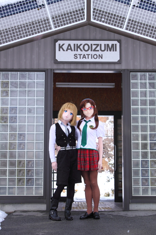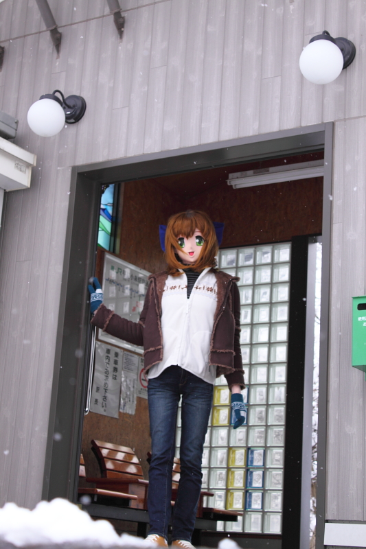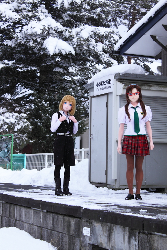 | お昼にピザを食べてから、雪晴れの中を第三次のロケに発進。いや、それにしても大雪警報だったはずが、よくぞ天気が回復してくれて。午前中までの雪が降る中のロケも良いですが、雪晴れもまた違った味がありますもんえ。 今度は無人駅まで自動車で着ぐるみさんを乗せて。 マリさん、冬の制服はないですが、雪の中をどうぞっ! (エヴァの世界は地軸がずれて四季が無くなった世界だとかで) しかし、山の天気は変わりやすく。雲が流れてきてはまた少し雪もぱらついたり。 ・・・なのに全然寒そうでない。ご立派(^^) くーちゃんも登場。 あかん、また雪が降り出しそう。 ![]() ![]() 内蔵は悠さんなんですが、細いですね〜。凄く華奢な感じが出ててグー(^^) ダニーさんちのゆきえさんが出てきた辺りから、ちらちら雪がまた降り始めてきました。 ケーシ−さんちのゆかりさん。この足の長さ、まっすぐ、すらっと・・・反則っす(汗) 駅ロケ終了。おつかれさんでした。 でも、くーちゃんとマリさんは午前中ロケした雪原は行ってないので、ちょこっと廻ることに。 キツネやめて雪ウサギのつもり? (^^) うー寒い寒い! 着ぐるみさんは肌タイツに面をして全身が覆われているので、着ぐるみやってる最中はそれほど寒さは感じないものですが。サポートする側は防寒をしっかりしていっても、やっぱふきっさらしの雪の中ではね。1.5時間程ロケってきて撤収。うーん別荘内が暖かい。 そいでもって、このプレスセンターもどきの電源自体も相当発熱していそう(汗) カメラで撮った画像を転送したり、無線でオフ情報流したり、たこ足配線の先を充電池つなぎまくったり(^^) 帰ってきて一服と思ったんですが・・・あなたなにそんな涼しい格好してるの?(^^;) ![]() ぱっどさん撮影 そしたら、我も我もと真冬の水着大会に。 ![]() もぽとさん撮影 ![]() もぽとさん撮影 まあ帰ってきた後は脱いだり着たり、お菓子をつまんだり、しばしまったりモードに。私もミズーをもういっぺん出そうと着替えます。 ゆかりさん、ようやく暖かい格好に復帰ですな。 ![]() もぽとさん撮影。これはいつぞやぱっどさんにメイアを撮って貰ったのと同じ手法。 私はちょっと落ち着いた感じでミズーを。以下しばしぱっどさん撮影。 ![]() ![]() ![]() ちょっとした顔の向き、光線の加減で随分表情変わるでしょ? (^^) こちらはもぽとさん撮影。 「うん? なにかしら?」 ![]() ちなみに読んでいたのはナニワ金融道だったりします(w で、もぽとさんが「うわっ! 外また晴れてきた! すげー良い感じ! 外出よ! 外出よ!」 と、勧められて、ミズーも再び外へ出ることに。 ![]() ![]() ぱっどさん撮影 もぽとさんが撮りたかった鈍い金色陽射し越しのミズー。 ![]() ここからはダニーさんに二階から撮って貰った写真 ![]() ![]() ![]() ![]() これ、今回撮っていただいたミズーの中でもとってもお気に入りな一枚です(^^) このアウトフィットは作品とは全然関係ないものなんですけど、カーキグリーンのミリタリーっぽいのが「絶対殺人武器」ミズーに合ってるかなと揃えたものです。 この頃Lewinさんから電話で最寄り駅に着いたとの連絡が。 ここでいったんロケからの着ぐるみ撮影は区切って自動車で迎えに行って、今回のオフ会参加者がようやく全員集合。 陽が落ちた頃に夕飯に(毎度の)甲州名物ほうとうを食べに行って、温泉入って。その後夜の部へと向かうのであります。 ![]() This is the houtou. houtou is a miso-flavored casserole like the udoon. |