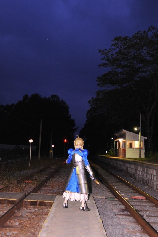 お昼にいつもの蕎麦屋さんで・・・今回は盛り蕎麦にそばがきをプラスしてエネルギー充填。 (そばがきって、見た目に違わず、結構食い出があるのです。以前は、最後の方で脂汗ながしながら食べましたが、今回は腹を空かせていったのでモーマンタイ!) で、東鉄さんは所用があって、ボチボチ帰る時間に。 東鉄さんを駅へお送りするついでに、きぐるみさんのロケも合わせて敢行。 駅に到着したものの、まだ時間はありました。駅には既に列車に乗ろうとされている方が三々五々集まり始めていましたので、駅から離れた踏切へ移動。 真凜さんちのエステルさんは、今回初の野外ロケ。中の人曰く「外ロケは想定外!」だったとかで(^^) 踏切付近から駅をバックに撮影してましたが・・・・ あれ??? (矢印) 東鉄さん: 「・・・・あの光ってるの、列車じゃない?」 ALL: 「やべえ! 東鉄さんを駅へ!!!!」 列車到着(^^;) 東鉄さんが帰って行くのを見届けて(^^;) 人のいなくなった無人駅で撮影再開。 初めてだったという外ロケにお誘いできて、TAKAも嬉しゅうございました(^^) それから、同行していた、マリさんも撮影。 のどかですねー。 駅の傍の美術館入り口付近で。 「はい、おつかれー」 なんか、本当に疲れた感じが伝わってくるような(^^;) 馬超さんも付いてきていたのですが、駅では私は撮影できず。帰ってから撮影しました。 別荘に帰り着いてから、東鉄さん見送り組の集合撮影(w 日も傾いてきて、少し明かりも金色を帯びてきているので、朝とはまた違う雰囲気で写真とれました。 爽やかな高原サイクリングしてた馬超さんなんですが・・・・次の写真はかずさん撮影。 私の見てないところで、こーんな、けしからん格好してました!(w ![]() うう、私も撮りたかった・・・ そして室内ではマリさんまでこーんな格好を! この辺で時刻は16時近くになり、そろそろ晩ご飯の仕込みをしなきゃいけないなーという時間。 今夜はバーベキューです。 まあ、材料を買ってきて、野菜やキノコをザク切りして、あと炭火を起こすくらいなので、全員が一斉に手分けしなきゃできないものじゃあない。 食器類も昨日のうちに洗ってあるし、二人くらいで作業すれば1時間もあればできちゃう状況。 準備する以外、残りの人らが厨房周辺で、ただ待ってウロウロしてても勿体ない。 実は私、暗くなってからセイバーさんを外で撮ってみたいと思っていたのです。夜の闇を背景に、フラッシュを焚いて銀色のセイバーの甲冑が浮かび上がれば、 これはナイスなんじゃあないかと。そして、無人駅の見通しの良いとこに立てば、さらにグー。 17時くらいには、もう外は大分暗くなってきて、正に撮影におあつらえ向きのハズ・・・・ そう考えて、彩弧さんをはじめ皆さんに提案。 かくして、彩弧さんを将軍にして、セイバーさんロケ特別編成軍を組んで(自動車で移動するにも、セイバーさんは鎧が大変!)出発していきました。 兵達に策を授けたTAKAしゃんは、諸葛孔明のように本陣に残って待つのであった。 ・・・もとい、野菜を切っていたのであった。 その頃、二日目から参加の悠さんもようやく到着して、炭火興しをしてくれました。さすが、手慣れてるのですぐ付いちゃって。 あとは私の野菜切りの手伝いしてくれました。 そして、彩弧将軍の戦果がこれに。 ![]() ![]() ![]() ![]() ![]() ![]() 言うことないっす。超カックイー! (^^) 彩弧さんの撮影テクが光っています! 私は策はあっても撮影テクはついていかないので、ここまでは。 でも私も、これをナマで見たかったなぁ・・・・やっぱり(w 最後に、たまきゅうさんの撮ったセイバーさんを一枚。こういう色合いも風情があって良いです。 ![]() 撮影部隊の皆さんおつかれでしたー! 無事撮影部隊が帰還した18時頃からバーベキュー開始。 ![]() 皆さんが、ほぼ腹一杯もう喰えない、というとこで食材も全て終了。 誰かから「ほんと、丁度良い分量買ってきたよねー」と感心されましたが、プチオフも8回目ですもんね。必要な肉の重量、野菜の個数とかもう頭に入ってます(爆) 「ご飯が欲しかった」という声もあってこれはちょっとうっかり。私、普段はダイエットで、おかず中心、ご飯は食べないことが多いので、気付かぬまま(^^;) ごめんちゃいですー。 next page |