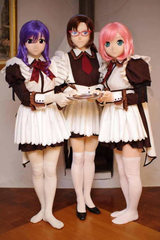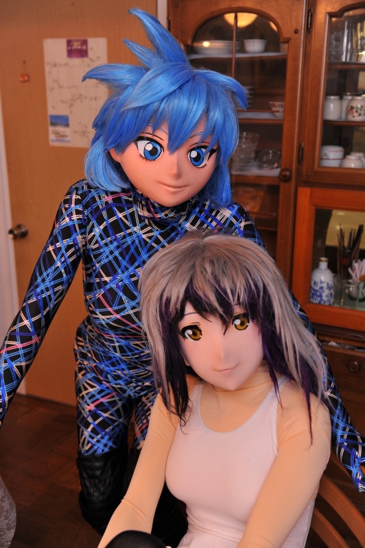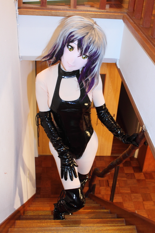 晩ご飯のBBQ、そして温泉後、私は昼間着られなかった分を挽回すべく、二日目夜はメイアとアスカを相次いで引っ張り出しました。 と、その前に。 私が着替えてる間にも、どんどこ着ぐるみさんが出てきているので、少しばかり撮影も。 みやこさんのギチ! うう、かちょええなぁ・・・しかし、私も着たい! 着替えにいそいそ・・・ところが衣装にちょっとアクシデントが(汗) アタフタ私がもがいてる間に、みやこさんの方は更に衣装替えまでして。 そして、私が着替えに手間取ってる間に、娘3人でメイド衣装合わせが行われていたのですが、私は見られずじまい(^^;) 写真はカールさん撮影のものです。・・・見たかった・・・ ![]() そしてやっとこさ。 駒鳥シエル・コスプレのアスカ、久々登場です。かずさん撮影。 ![]() スカートをちょっと上げてご挨拶。かずさん撮影。 ![]() ちょっと、お茶目に。彩弧さん撮影。 ![]() 実はこの帽子は右側を下げて目を隠すようにかぶるのですが、アスカの前髪がちょっと邪魔で据わりが悪くて。 真後ろにすっぽりかぶっています(^^;) ![]() そして、囚われのシエルも(w ![]() 漫画では腕から首からもっとロープをぐるぐる巻きにしてるんですが・・・・こんなぶっといロープを大量に買ってもねぇ、他に使い道無いし(^^;) ![]() 「着ぐるみは視界が悪い」という世間の常識を覆し、アスカは目隠しされているこの状態でも視界は確保できてます(^^) なので、この状態でも普通に歩いたりとか、「ねえ、ちょっとスカートを丸くなるよう広げて!」とか指示をしてたりしてます(w このあともうちょっと、シエル駒鳥ドレスのまま、ほのーとしておりましたが、メイアもまだ出してない衣装があるのでスイッチ。 久々のラインゼンタイ。それにメガ・ニーハイブーツの組み合わせ。真凜さん撮影 ![]() 初日昼にも出していたメガニーハイブーツとの組み合わせ(部屋で使う前に、ちゃんと靴底は綺麗に拭いて、綺麗にしてますヨー) 真凜さん撮影 ![]() 彩弧さん撮影 ![]() 彩弧さん撮影 ![]() この頃、午前0時をまわりまして。 日中、ロケで奔走した分、急速に皆さんバタバタ寝はじめました。 一方で、ここに来て、ようやく悠さんちのたまちゃん登場。 ![]() 撮影の人も急速にいなくなったので、ここからは私がカメラに廻ることに。 と、ゆーか、1時頃にはもう私と、たまちゃんだけになっていた(^^;) この日は集合撮影は無かったなぁ。メイドさん3人揃いで満足になっちゃったみたい。うっかりしてました(^^;) スレンダーですからねぇ、かわゆくえちぃ(^^) このBDは、初お披露目の衣装だったそうです。手袋の編み上げがワンアクセントになっていて面白いです。 私のとこではメイアがBD衣装を持っていたんですが、表面コーティングが劣化しちゃって、廃棄しちゃいました。 なんか欲しいなぁ・・・と思って通販サイトなんか覗いたんですが、今回は間に合いませんで。 「いいな、いいなぁ」と、ただ、たまちゃんを羨ましがるばかりでした(w 二階の大部屋が寝室になっておりますので上がってみましたが、やっぱもう皆さんお休みになってました(^^;) この日は2時頃で撮影も終了。このあと人間に戻った悠さんと、お菓子をツマミながら3時頃までダベって就寝。 でも、翌朝も6時前には起き出しましたよぉ(^^) 元気イッパイ! tomorrow morning ![]() next page |