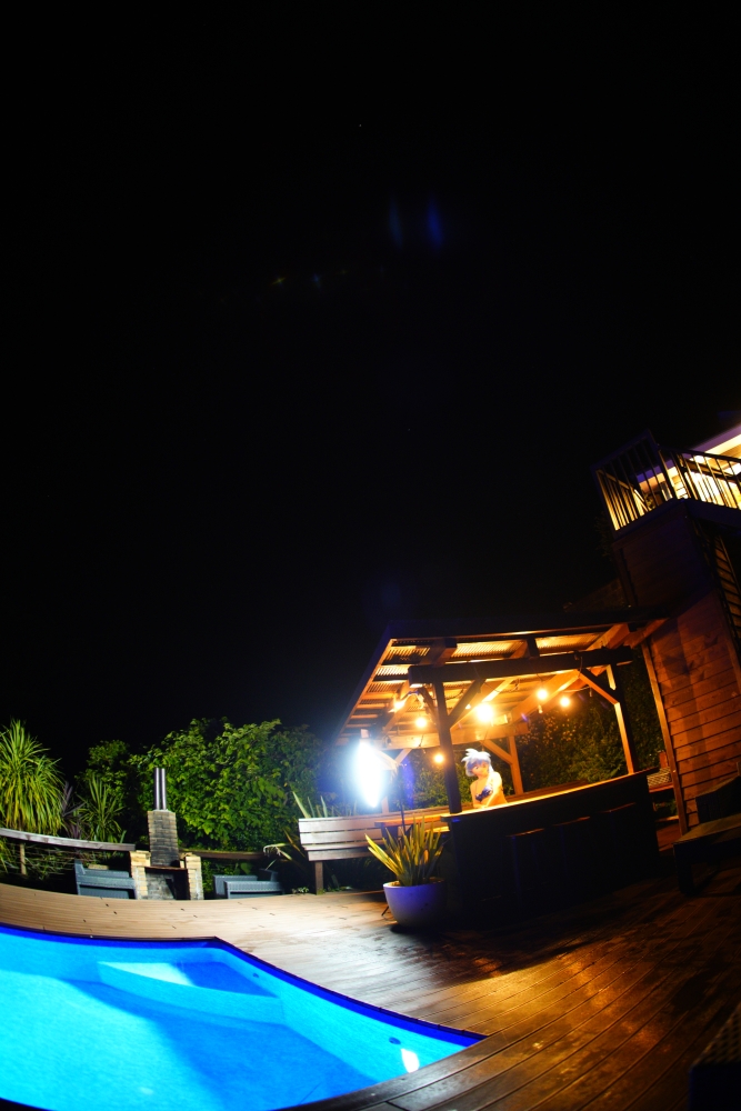 別荘にはプールとそこに隣接して東屋が置かれていて。夜は電灯下で、これまた良い雰囲気になるのです(^^)