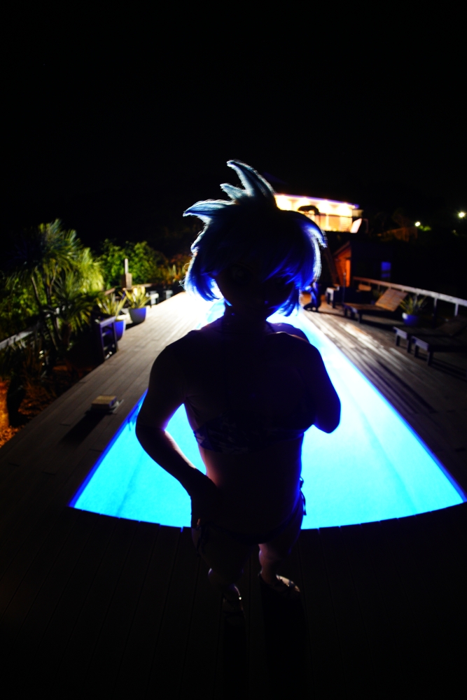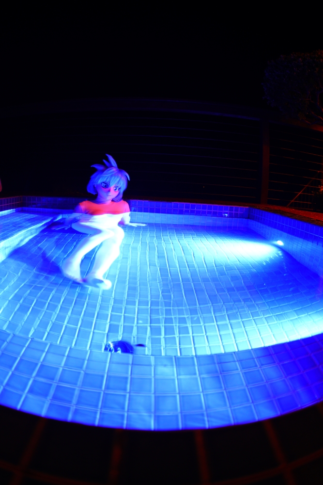 当日はまだ6月頭で。日中日が差してるときは夏のように暑くて、プールに入ってるのもひゃっこくて気持ちよかったんですが。陽が落ちるともう、プールの冷たさが厳しくて。
