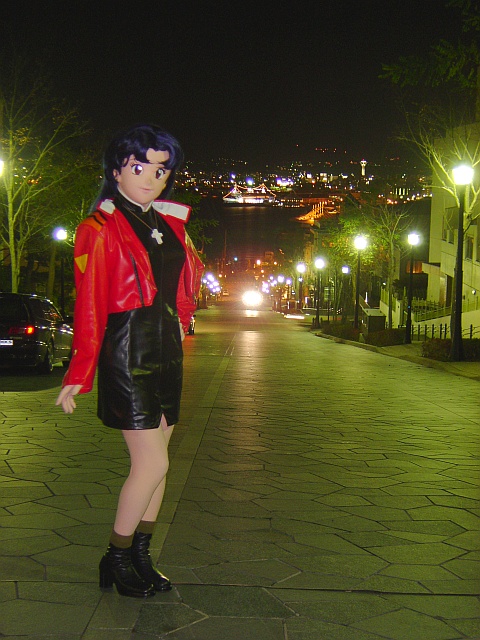 夜もうちょっと暗いかなと思って、赤い(目立つ)ネルフ制服のミサトで臨んだロケでしたけど、場の雰囲気に合わせてもう少しシックな衣装の方が良かったかな・・・