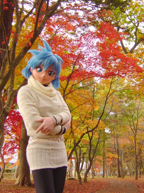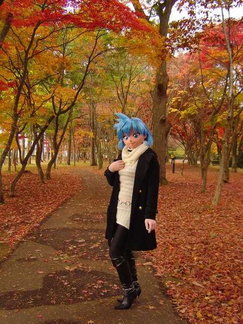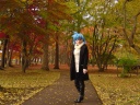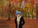 紅葉の中を散策するメイア。