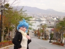ところが、実際には雨は降らず、逆にどんどん天気は良くなっていく一方。二十間坂に立つメイアは曇り空ですけど、函館山では青空が広がってきてますよね? ロケの終わったとは快晴とまでは行かなくとも、むちゃくちゃ良い天気になって。うーん、悔しい・・・。天気が良くなっていくことが分かれば前倒しにせず、もっと分散させてゆったりしたかったのに。