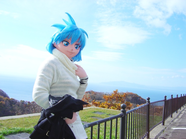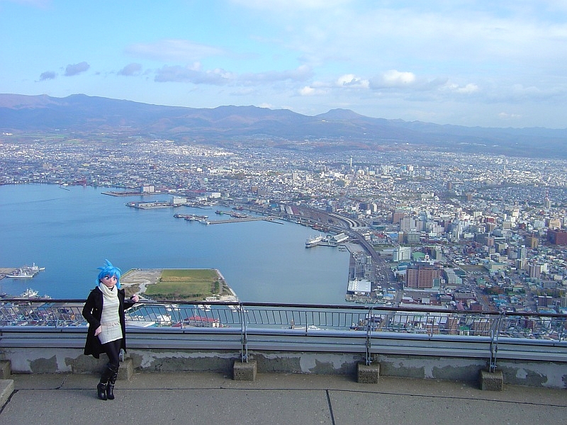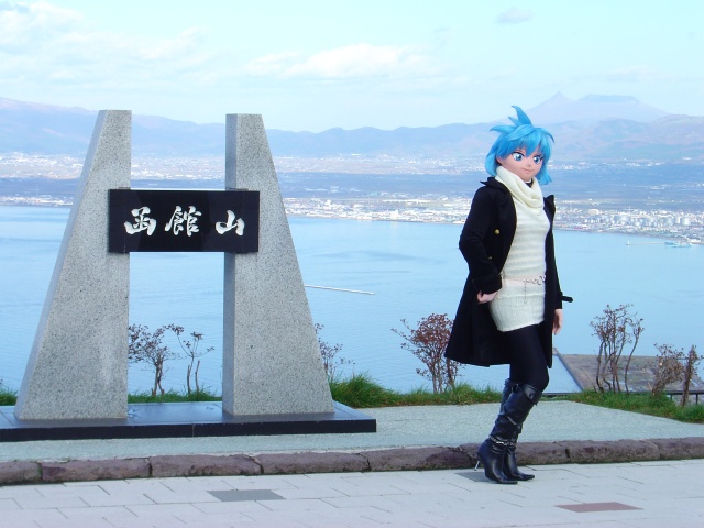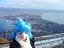 ここからの夜の展望は世界三大夜景の一つとして有名ですけど、昼間の展望もなかなかどうして。夜は公共交通機関(ロープウエイ)でしか上がれないので、着ぐるみさんを出すのはちょっと気が引けて、昼皇さんの自動車で山頂まで連れて行って貰いました。