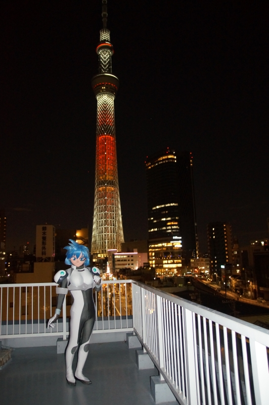 冬晴れの空をバックに、東京スカイツリーが映えます(^^) このスタジオは、なんといってもこの屋上での撮影でしょうね。