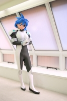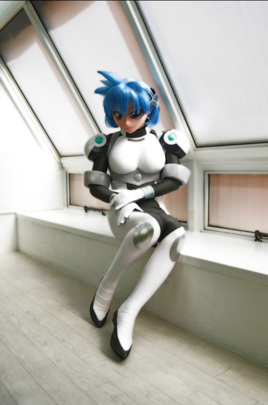 まずは、スタンダードにパイロットスーツ姿で。ちょっとSFっぽい背景をバックに。
