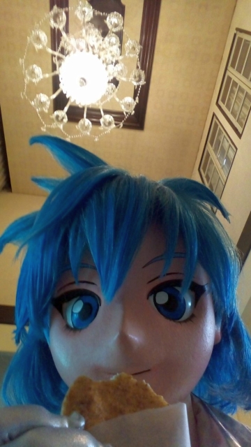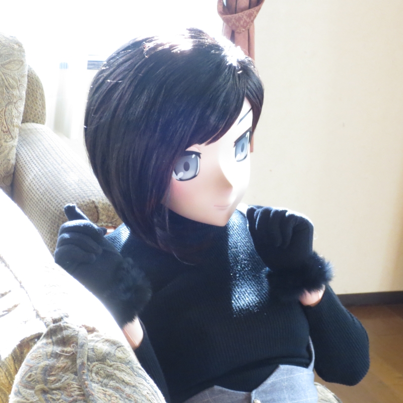 撮影の合間にスマホで自撮りした画像をtwitterに貼ってレスを眺めているメイアでした(w