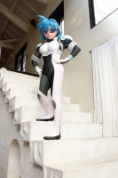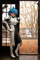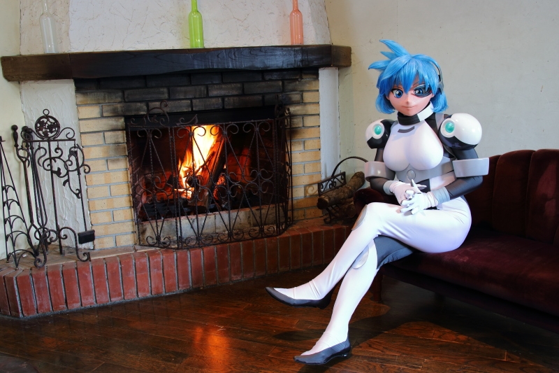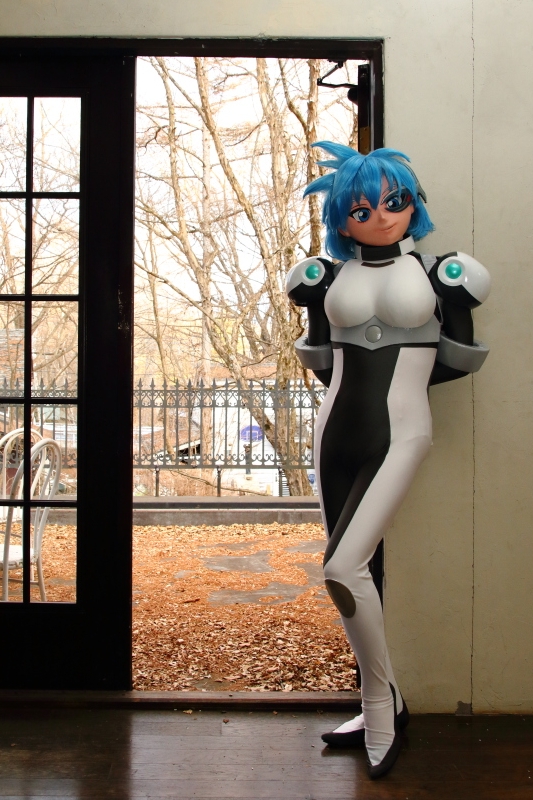 再度メイアに着替え。デフォルトのパイロットスーツです。白に炎の赤がほんのり写ると良いかなって、トライしてみました。