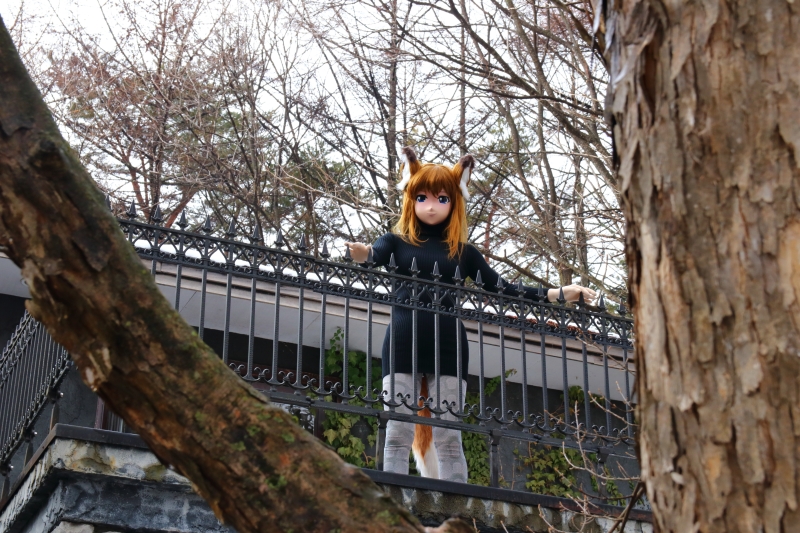 少し薄日が差した一瞬を捉えて外へ。ベランダでくーちゃん撮影。