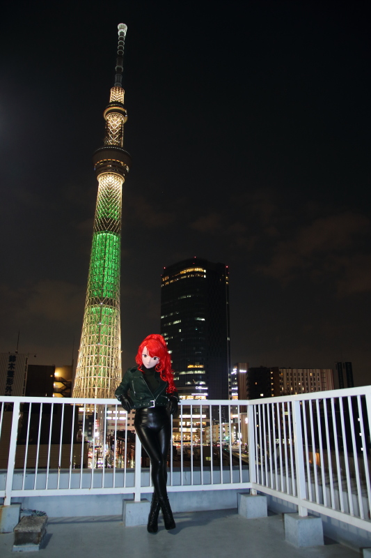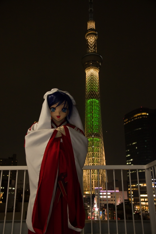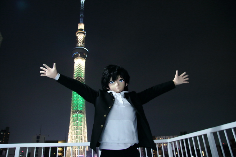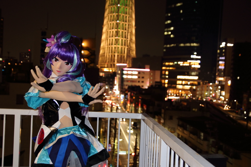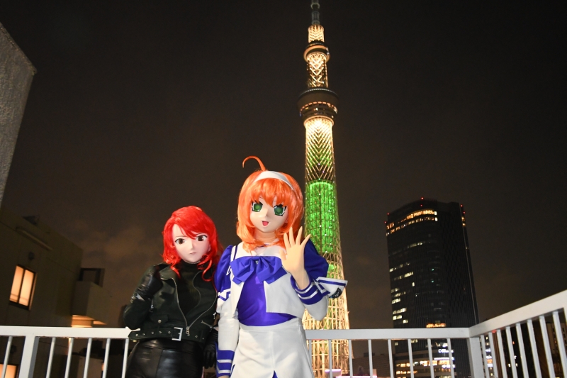 日が暮れた頃、屋上でスカイツリーをバックにした夜景が始まります。