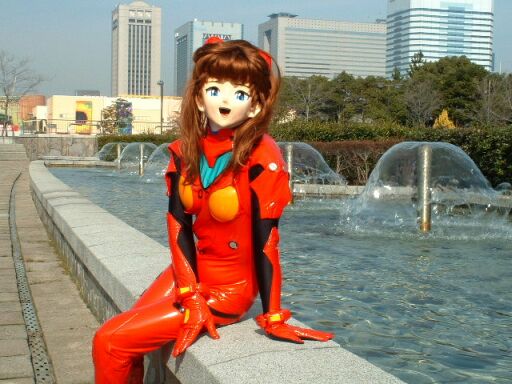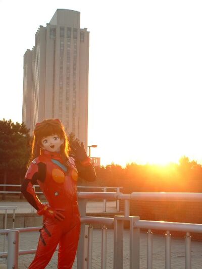 更に更に今度は幕張に移動。移動中は着替えがめんどくさいので自動車の中でアスカのまんま移動。一応見られないようにシートに深く座り込んで、コート羽織ってましたけど、着たままドライブ良かったなぁ(^^)