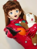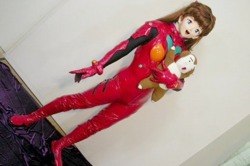 惣流・アスカ・ラングレー ギャラリー Kigurumi cosplay gallery of Sohryu Asuka Langlay (式波・アスカのページはこちら) 新世紀エヴァンゲリオンのヒロインの一人、アスカ! ひっちゃかめっちゃか、天衣無縫、わがまま。 それでいてルックス抜群、頭脳明晰(中学でドイツの大学在籍)、しかも運動神経抜群とくれば、これはいったい、なんなんだ!? (^^;) エヴァンゲリオンが放映された当初、世の中の好みは圧倒的にレイ!、という風潮でした。アスカに対しては特に同年代辺りの女性からは非難ゴウゴウだったような。 ところが、私はレイには当初「ふーん」だったけど、初登場の回を見たイッパツでアスカ・フリークになっちゃいました。なにがそこまで私を引きつけたのかは定かじゃありませんが、挙げ句、着ぐるみにまで走らせてしまったくらい好きなキャラです。 そうなんです。 実は私が着ぐるみを始めたのはアスカが原因なんです。着ぐるみが好き、というよりアスカが好きで着ぐるみを始めたんです。 エヴァの放送後1年ほど経ったある日にネット上でお師匠様が自作でアスカの着ぐるみをしているのを見かけて、 「うわっ! 世の中にはこんな凄いことやる人がいるんだ! それと、こういう事も出来るんだ!」 と、ぶったまげてしまった次第です。 気がつけばアスカだけの着ぐるみだったつもりが、あれもこれもやるようになってしまって。私を着ぐるみの世界に引きずり込んだ業の深いキャラです<すぐ人のせいにする |