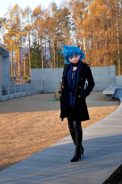 Misato in the Taisho mura theme park '10.11.30 11/6にHOSOnさん主催の撮影オフ、JACKET in 大正村 2010に行ってきました。そのオフレポ第一段です。![]() 撮影Kigurumi-C-modeのレオさん。 web拍手返信等 '10.11.29 【web拍手返信】よくみさせて頂いています。趣味に対して真剣に活動されている姿、かっこいいです。いつか自分もその位置に。そう思っております。 ありがとうございます。より楽しく・かっこいい着ぐるみに出来るよう「数奇」しております。こう言っていただけて、とっても嬉しかったです。 文面からして学生さんでしょうかね? 焦らず、着ぐるみ出来るようになってください。 私が始めた頃はこの世界が開けたばかりで、みんな初心者、ほとんど自作で衣装・面を作っていたのですけど、今は世間のレベルが全然変わってしまって。まずちゃんとした(安定した)収入がないと、なかなか難しい時代になってきています。学業に精出して就職して安定した収入を得られるよう頑張ってください。 それと拍手返信とは別にちょっと気になっていることを。 大分涼しく(寒く)なってきましたので、着ぐるみで撮影会やコスプレイベントに再び出歩くようになってきたのですが、他の着ぐるみさんを見ているとどうにも姿勢の悪い人が多いのが目に付きます。 具体的には猫背、あるいは首を前に傾斜して突き出す格好をしてる人。 正面からならまだしも、側面から見たら・・・無気味です。 恐らく背筋力が弱くて面の重さに負けて首が前に引っ張られているんだと思います。(見栄えを良くしようと)痩せるべく食を抜いてる方、要注意です。筋肉まで落としてしまったら、いつか人生泣く日が来ますよ。背筋力に限らず、いみじくも美少女・少年を演じるなら、快活な振る舞いを見せられるよう、体も一緒に鍛えましょう。 (^^)v Misato in Akihabara UDX '10.11.25 先月、秋葉原UDXでのコスイベントにミサトで行って参りましたので、そのレポをup。