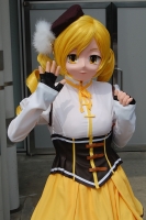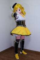 (制作記録) 巴マミ着ぐるみは魔法少女まどか☆まぎかの放送終了後、3ヶ月で作りました。私としてはとんでもなく早く着ぐるみにしたキャラです。大抵私の場合、キャラも作品も好きになって十分こなれた(?)頃に着ぐるみをするので大抵は放送終了後数年たったキャラをやっています(ナンシー幕張なんて10年前だし)。まぁ、それくらいはまってしまったということで。 (^^;) 衣装はブーツ以外はCpさんに色々相談して作っていただきました。ソウルジェムはもち子さん(中国のコスプレイヤーさん)通じて中国からの輸入品(wを使ってます。 そんな感じで私は面の製作に集中。 最大の難関は目と眉の位置でした。 とにかく、目の位置がやたら低い! その一方で眉が高くて目と眉が極端に離れています。私の面は目の瞳部分と眉毛のスリット、いずれかを人間の目に合うように作りますが、マミを設定通りに作ると人間の目の位置と顔のパーツが全く合わない! 位置決めに四苦八苦して妥協しましたが、ちょっと視界確保が良くなかったです。このマミを見るとアゴを上げ気味にしている状態を見かけることがあるかも知れませんが、それは視界確保してる状況と見てください(w もう一つ頭を悩ませたのがロール髪。 普通の縦ロールじゃないんですよね。横に蚊取り線香みたいにぐわーんと広がって、しかも重力に逆らって斜め外方向に開いてる! ハンパな心材ではこの形状は作れませんね。私もとある素材を心材に使いましたが、もうイマイチでした。短時間ならそこそこ形状を保つんですが、2時間、3時間と時間が経つと重力に負けてしまって、下方向に延びてしまいます。何か良いアイデア思いついたらもう一回作り直してみたい気もしてます。 |
