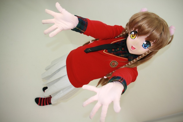 思絵ちゃんの紫の服は特注だよね? 着ぐるみ面の頭に普通の帽子じゃ小さすぎて合わないもの。