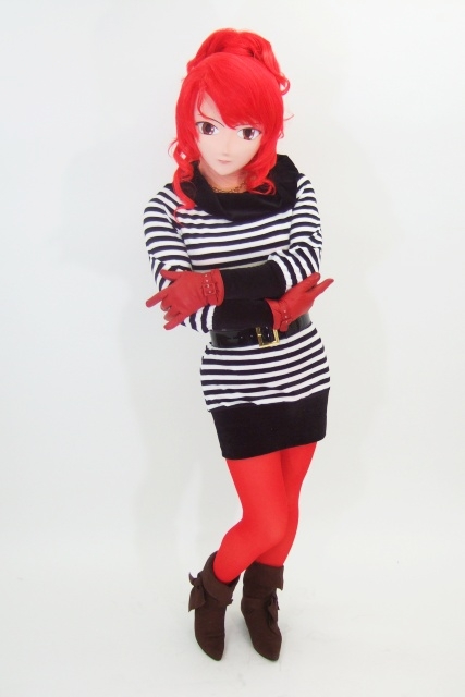 まずはメイアのボーダーチャニックにヘアカラーを合わせた衣装で。