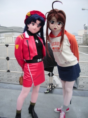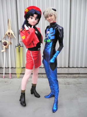 思いがけず実現したWミサト。コスプレの世界でもこういう同じキャラのペアショットって、あまり見かけないから貴重かも(^^) 実は、みさとみなとさんのミサト(ちいぃぃ!ややこしい!w)と同じ黒のワンピも持っていっていたんです。 前日、大慌てで手修正したやつが。でも、合皮製で着ると凄く暑いんです。 外はともかく、今回のWFの更衣室は激狭で、むちゃくちゃ暑かったんです。で、結局黒ワンピは着る気が萎えて断念。 本当は黒ワンピの方で出たかったんですけどね・・・ でも、Wミサトになって、衣装パターン違う2人が並ぶことになって、結果、こっちの方がオーライでしたね。 なつきさんのなるちゃんとお会いするのは久々。私がイベント出不精になっちゃってるせいだけど(^^;) あー、昔、お伺いしたときにさくらちゃんとペア写真(というか団体写真?)以来のペア写真かも。 珍しいけど、コスプレのカヲル君(麻由加さん)とのペアショットさせていただいたのも嬉しかった(^^) これ、分かる方には分かると思うけど、凄いペアショットですよね。リバースしてるんですよ、漫画みたいな状況に(^^) 私が会場内を歩き回ってるとき、お互い目線があって「撮影しても良いですか?」と、撮りっこしてるうちに周囲の方から 「ペアで撮らせてください」と仰る方達が来ましたので、 ついでに私のカメラにもペアショットをお願いしちゃいました。 作中、ほとんどからみのない2人ですが、これも、まー善し善しということで(^^) このプラグスーツは自作だそうで、私もアスカのプラグスーツを自作したことを披露しました。で、2人の共通した意見は 「もう2度と作りたくな〜い!」 でした(笑) |