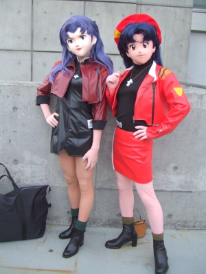 | ’06.02 ワンダーフェスティバル 実は直前2日前まで、行く気の無かったWF。 昨年末頃からコンディションがちょっと良くなかったり、ずっと予定が立て込んでいたのですけど、 ・にわかに、予定が空いてしまってWF当日が「真空状態」になってしまった ・期限切れ目前の東京行き特急回数券を発見してしまった ・ミサトを見たいとお誘いがあった 等々により、WF前日、にわかに参加することに決めました。 最後の理由はともかく、前2者は後ろ向きな決断だなぁ(^^;) でも、行って良かったです。 やっぱり、体のコンディションを気にして、正味2時間ちょっとに抑えてのミサト出撃でしたけど、大勢の方から声をかけていただきました。 さすが、WFというとこでしょうか。着ぐるみ好きな方が多いし、エヴァンゲリオンのファンも多いし。声をかけていただいた皆様、ありがとうございます。 (それと、声をかけられずに遠目で見ておられた方が何人か。あとでそういう話も聞きましたけど、うーん、残念! 今度は是非お声かけてください) 何人の方から写真を戴きましたので、それらについて、ポージングの違うものを1枚づつupさせていただきます。