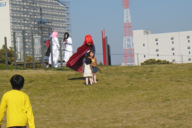 かくして、三番瀬公園に戻ってきたのですが、その頃時刻は12時。この時間になったらコスプレイヤーもちらほら見かけるようになっていて、家族連れも大分園内を行き来するようになっていました。