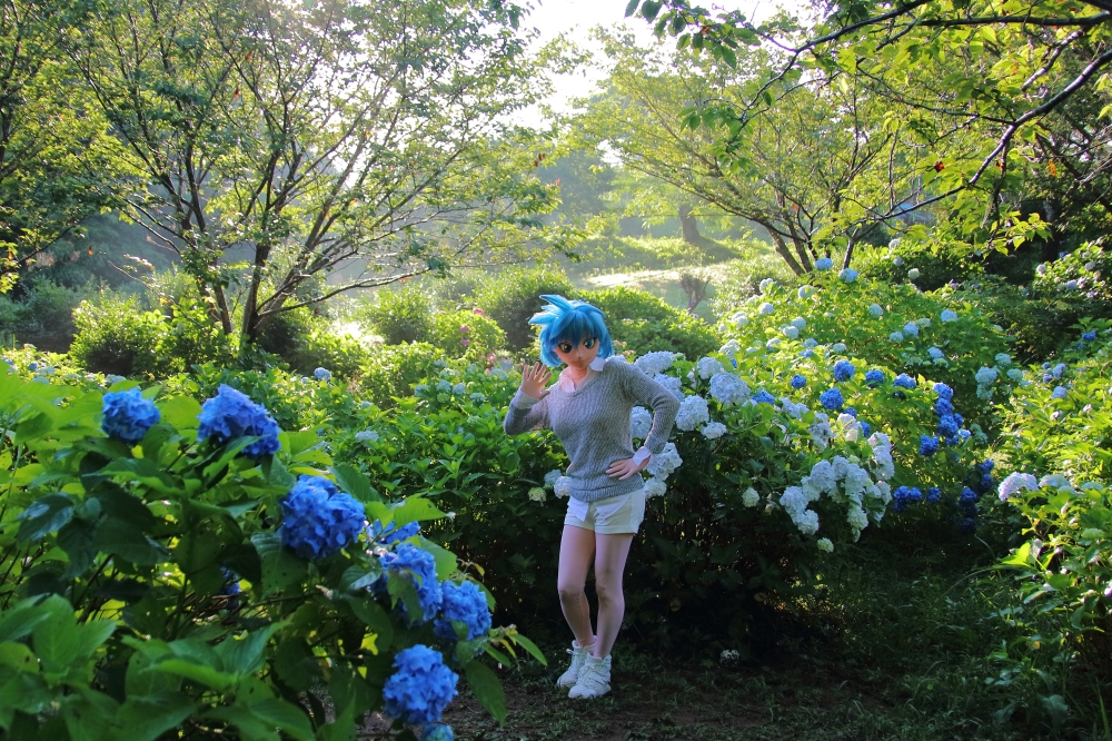 | 2024年6月 房総アジサイロケ(1/2) くもろーさんとカール4世さんから、6月に房総でアジサイロケをしません? とお誘いを受けました。 実は去年も偵察がてらに三人でロケ地探しへ行っていまして、当たり付けは行っていました。で、今年もそこへ行こうという話だったのですが、5月に高温が続いて東京では昨年より1週間近く早くアジサイが咲き始めているとニュースが出ました。一方我々がロケに行ける日程は、去年より数日遅い日しかない状況となりましてして。これは・・・もし行っても現地でアジサイが終わっていたら目も当てられない。 と言うことで、時間に都合の付いた私が、ロケ本番の2日前に房総半島へ先行偵察に行くことにしました。 ![]() 房総半島は観光開発があまり進んでおらず、海岸線は元より、内陸丘陵地帯にも見所はそれなりにあるのですが、道路は狭いし公共交通機関も本数が少ない。まあ、そのお陰で着ぐるみのロケもやり易いところが多いのですが。 去年三人で偵察ロケした2箇所以外にくもろーさんの提案戴いたもう一箇所と、私が個別に見つけておいたアジサイの群生しているところと計4箇所を見てまわろうと。都内を朝の3時頃出発しました。 そして、房総半島北部から各ロケ予定地を北からチェックして周ります。 最初に着いたのが私が個別に目を付けていた場所へ。 ここが、これから最盛期を迎えようかというタイミングでアジサイが咲いていまして。おまけに早朝6時で人もいない、天気は快晴。 ここぞとばかり、三脚を立てメイアに着替え、セルフロケをしました。 ![]() 快晴と書きましたけど、前日が大雨で辺りは日を浴びて蒸発した水分で一時的に辺りへ霧が立ちこめて。山裾から日が差し込んできたところ、たなびく霧を背景に1枚。 でも、霧はすぐに立ち消えになってしまい・・・そもそもセルフロケなので、カメラのセッティングをしつつ、良い塩梅の場所にうまく立つという作業にまごついて、絶好のタイミングをこれ一枚しか撮れませんでした。悔しい。手間取らなければ、もっと真っ白で幻想的なとこを撮れたんですけどね。 霧もほぼ晴れた頃。アジサイ満開で見事でした(^^) ![]() その後ここから南下して、去年、偵察でロケした2箇所とくもろーさんから追加で提案戴いた1箇所の計3箇所をまず見てまわったのですが、こちらはアジサイの開花は既にピークを過ぎていまして。どこも枯れ始めている感じ。 ![]() 更に2日後となったら、もうしょぼい写真しか撮れない。以上偵察状況を報告して協議の結果、2日後のロケ本番は、一番北のメイアの写真を撮ったところで行うことに決定。 2日後、くもろーさん、カール4世さんにあおいさん、私を加えた四人でアジサイロケに臨んだのでした。 next page |