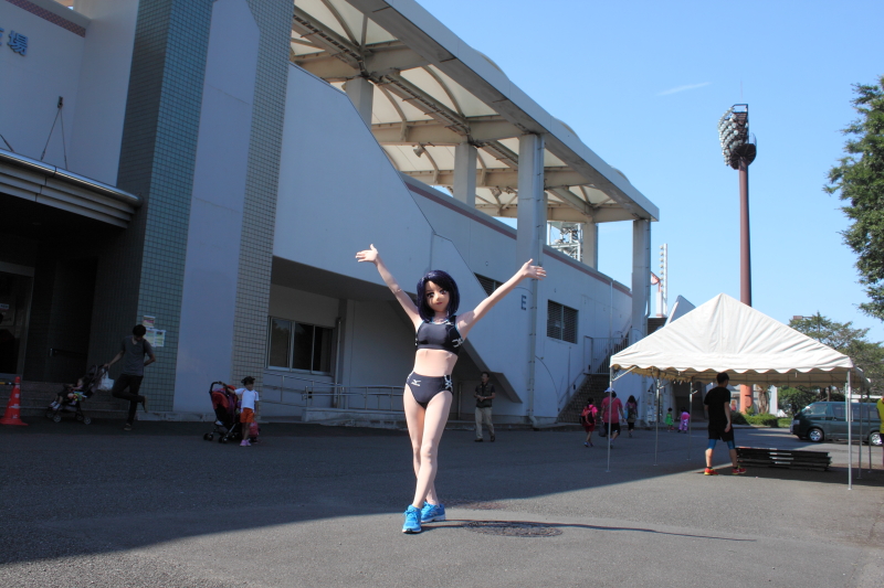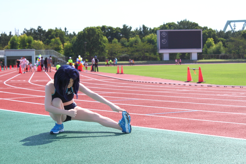 いきなりアスリートな格好をしては何のキャラか分からなくなっちゃいますので、まずは「この人はアニメキャラなんだよー」とPWを兼ねて