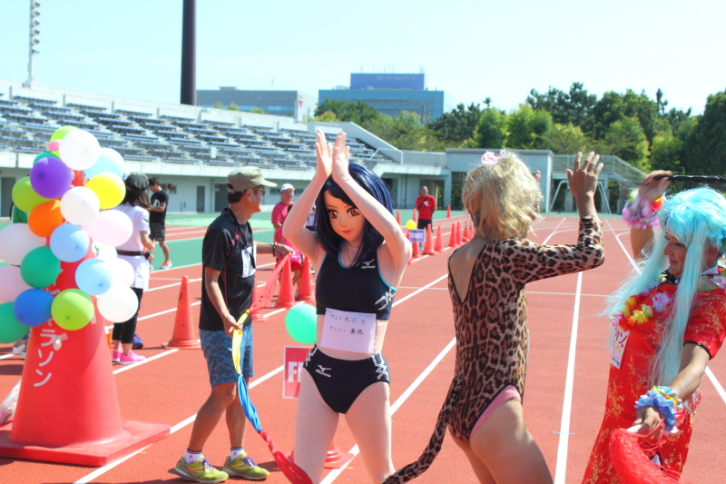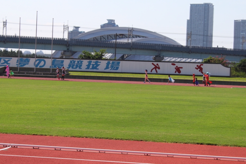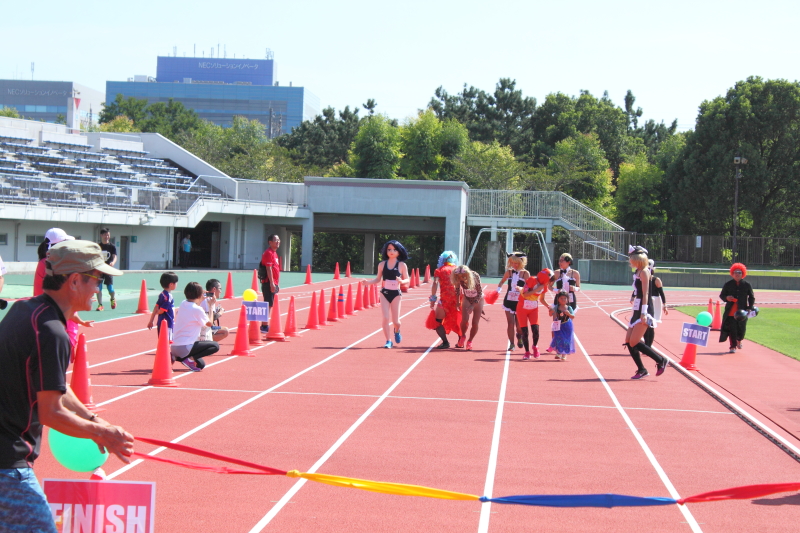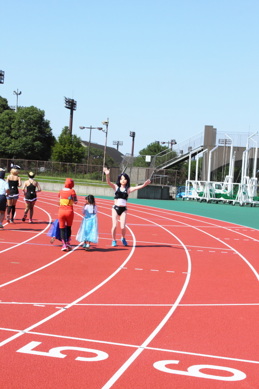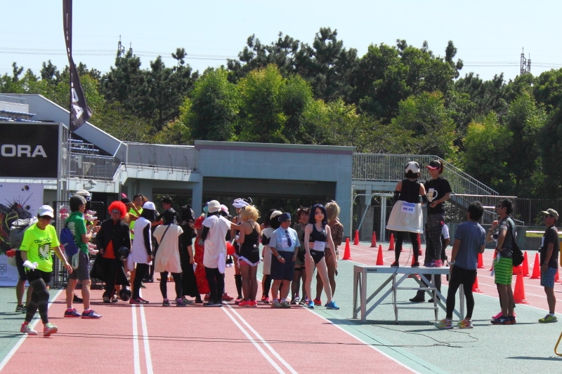ナンシーが参加するコスプレミニミニマラソンは一番最後のスタートなので、別セクションのランナー達がトラックに集まっては走っています。