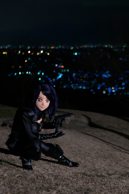 山頂から見下ろす町の灯りが、色んな色があって綺麗なんですよね。黒の衣装に映えてて嬉しいです(^^)