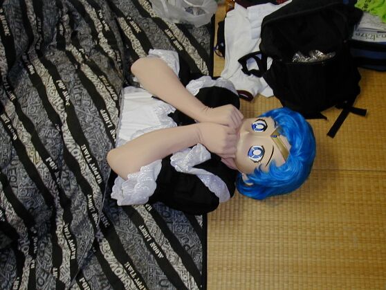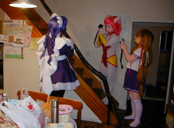 1Fダイニングでくつろぐメイアとみなとさん。しかし、min.さんの亜美ちゃんは徹夜の運転のせいか、いきなりコタツで着ぐる寝して、お疲れ?(^^)いえいえ、このあとしっかり復活していました。この頃からみんな一斉に着替え始め、会場内は一人、また一人と人間が姿を消し、人形が増えていきます。