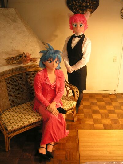 丁度このころ到着したbeckさん。いきなり3体の着ぐるみに囲まれて硬直してました(^^;)いやー、そういうの見てると余計にからかいたくなって、わざとベッタリ寄りそってみたり。首もとをすーっと指でなぞってみたり。