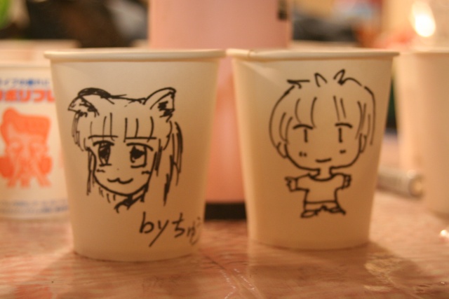 オフ会費抑制・・・もとい、エコロジーに配慮して、紙コップを浪費しないよう名前を書いて貰うことに。