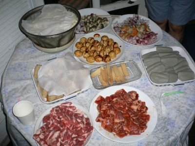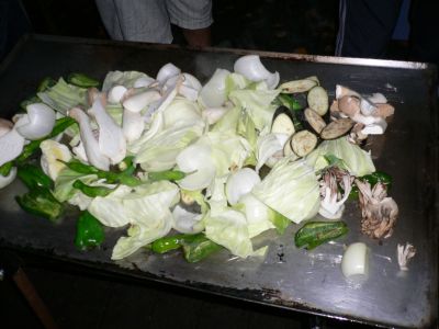 17時頃から本格的に開幕。29人分の食事。バーベキューに、おでん、やきそばと食い物の山、山、山。炊き込みご飯のおむすびまでどっさり。
