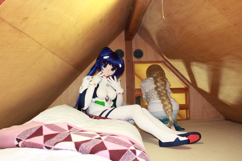 | オフ会を開くのは3年半ぶりです。 諸々考えがあって、大きなオフ会は基本的にはもうやらないつもりでいるのですけど、オフ会そのものを全くやらないつもりでは無いのですが・・・。 どうも都合がうまく付かずに(2,3回企画はしたけど流れちゃったりで)、気がつけばこんなに日が経っていたんですね。 その間、スタジオ撮影会は何度も開催して、それはそれで楽しかったんですけど、ゆったりアレコレ話しをしたり、くつろぐには二泊くらい宿泊のオフがいいですからね。 そして今回久々に貸別荘借りてのオフ会開催の運びとなったのでした。 参加は、ぱっどさん、東鉄さん、めげぞうfelonさん。そして彩弧由貴さんは当日会場手前数kmまで来ていながら諸般の事情で撤退することになってしまって、残念至極。いやー、実は他にもとんでもない事情で急に参加出来なくなってしまった方もいて、なかなかみんな大変です。実のところを言うと、私は過去に自分が主催した撮影会を前日ドタキャンするというとんでもない事態にも見舞われたことがあって。 人生、何が起きるか分かったモンじゃありません(^^;) というわけで、この先何が起きるか分からないので、10月三連休は日頃の憂さを忘れて着ぐるみ通じてのまったりゆったりなプチオフを満喫してきましたー(w 会場は、過去何度か使わせていただいている貸別荘。 内装がよいとか、周囲に撮影スポットに恵まれているという所は色々あるのですが、ここは周囲に人家がないので深夜遅くまではしゃいでいられるし、クアハウス風の温泉が周辺三カ所にもあるし、蕎麦のうまい所がたくさん。あと、顔なじみと言うことで色々便宜も計っていただけるので、ついついここを使っちゃいます。 当日、今回の参加者は私以外全員列車なので先に一人14:15頃オフ会場に到着して荷下ろし。 自動車の荷物をカラにしないことには、着ぐるみさん一式を担いで持ってくる皆さんの荷物を載せきれませんからね。 そして、勝手知ったるいつもの別荘。 荷物を全部部屋に入れて鍵を閉めて出ようと、聞かなくても知っている鍵の隠し場所(wを見たら・・・ 「あれ!? いつも置いてあるのに無い!」 オーナーに電話連絡したのですが、別荘の管理人さんはその日お孫さんの運動会に行っていてすぐには来れないと仰る。 がびーん! ( ̄○ ̄;) 駅へ参加者を向かえに行けないじゃん! それから20分位、部屋の中をあちこち物色して廻り(その姿は空き家に忍び入ったこそ泥)、ようやく食器棚の一角、コップをおいた食器シートの裏に忍ばせてあった鍵を発見! <ナンデソンナトコニ気付イタノカ自分デモ不思議。才能カ? 鍵を閉めて、慌てて最寄り駅へと車を飛ばし、皆さんを無事お連れすることが出来ました。 皆さんを収容して、その夜は地元料理屋にお連れして、ゆったり晩ご飯。 実はこのお店で食べたのは、ようやく二度目。昔、オフ会前の現地下見した時以来です。 過去、この周辺で何度も大きなオフを開いているんですが、幹事業務が忙しくて食べに行けなかったんです。参加者だけで行って貰って・・・。 大抵みなさん現地到着時刻がまちまちな上に「行き方が分かりません」と迷子になる人が必ず現れるので、その救助に飛び出したり。参加費の集金業務と、管理人への費用払いの折衝もありますのでね。別荘からなかなか離れられないんです。今回、参加者数を絞ったお陰で、オフ会では初めてゆっくり晩ご飯を食べることが出来ました。美味しかったです。(^^) その後は露天風呂付き温泉で星空を眺めながら汗と旅塵を落として貰い、貸別荘に戻り、いよいよ着ぐるみさん登場です。 まずは貸別荘内部の案内がてらの写真をば。 ![]() 着ぐるみさんのスリーショット。私のアスカとめげぞうfelonさんの伊藤乃絵美嬢、そして東鉄さんのアリシアさん。 ![]() 会場内を綾波コスプレの乃絵美嬢がご案内。 建屋玄関入った中央にダイニングキッチンがありまして、ここに和室とリビングフロアが面しています。乃絵美嬢背後のドアの先に和室があって、ここが着替え部屋兼撮影機材その他荷物の集積基地となっています。着ぐるみさんの写真の美しさの裏、あの奥の和室は一面、ぶちまけられた荷物類が散乱しておりました(^^;) 建屋はログハウス風になっていて、綺麗。これを背景にするだけで普段と違った写真が撮れます。そしてダイニングキッチンに隣接する形で12畳ほどのフロアが隣接しているので、着ぐるみさんの全身像も余裕で撮影できます。 そのフロアには屋根裏部屋へと続く階段があって、そこでも寝泊まりできます。 (ぱっどさん曰く、寝たら乾燥していて喉が痛くなったとか。翌日は私が屋根裏部屋で寝ましたけど、塗らしたバスタオルを吊る下げて寝ました(w) 屋根裏部屋からはダイニングキッチンを見下ろせる窓がありまして。昔、うちのさくらたんが遊んでいたとこです。 そこから見下ろすと、こんな感じに。 ![]() 当日夜は結構冷えました。 遅れてやって来た管理人さ