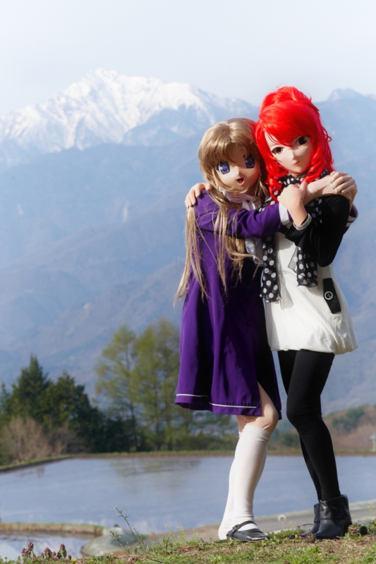 いきなりどーん!![]() ミズーの手にする一升瓶はもぽとさんの持ち込んだ銘酒獺祭(だっさいと読みます)。 主にもぽとさんとぱっどさんがクィクィ飲んでいたんですけど、一升瓶ですからねぇ。これを二人二晩で飲みきるのも結構大変、それに酔いも加わって、段々怪しいというか大らかになってきて。夕方、前夜の焼き肉の残りに追加発注した食材をくわえて二夜連続の焼き肉パーティーになったんですけど。最後の締めの焼きそばで二人が怪しいことをおっぱじめました。 「焼きそばに水の代わりに獺祭入れてみネ?」 なんと畏れ多い! これほどの酒を定価¥200あましの焼きそばに混ぜるぅ!?! 酒造元が知ったら号泣されること必至な暴挙ですな(^^;) えっ!? えっ!? という間に一升瓶を逆にして、ざーっと。 「へい! 酒蒸し焼きそば一丁上がり!」 哀れ焼きそばごときに混ぜられてしまった獺祭でしたが・・・・うむ! ムチャ旨い! コクがあってうまみがあって、どっしりとした品格のある焼きそばが出来ちゃいました。いやぁ、さすがというか、こんな旨い焼きそば食べたこと無いというくらい、絶品な焼きそばでしたわ。これは良いモン食べさせてもらいました・・・・あれ? あれ? ・・・・れれれ? にわかにぽーっと全身が火照り、めがとろーんとしてきて、ほへーはひーふほー・・・・ 寝ちゃいました(爆) 「うそだ、絶対ありえねえ!」 (もぽとさん談) 十分加熱したからアルコールは飛んでるというのが、もぽとさんの主張。それを裏付けるかのように私以外の三人は何事もなくフツーに起きてらっしゃる。 私、アルコールがちょこっとでも入ると寝ちゃうのですが・・・・アルコールが無いはずなのに酔う? そんなはずはない! いやいや、あったんです! 獺祭があるから私は寝ちゃったんですぅ! もぽたんの理論よりわたしのからだが存在を保証してる! (>◇<) しかして、私は「超高性能アルコール検知器」とか「焼きそばに酔う人」とか色々言われながら、この後眠い目をこすりつつ着ぐるんだのでした。 眠いくせに・・・それでも着ずにはいられない。ドーラーの悲しい性ですな(嘘) そして眠気覚まし(?)にミズーのぶらっく団姿が登場。 ![]() 背後流し台には焼き肉パーティー後の方付け食器が(w ![]() およそログハウスにこれほどミスマッチな衣装もないでしょうなぁ(^^;) 自分でやっといてなんですが。 ![]() 酔った勢い?で、胸元ジッパーがつつつ・・・・ (爆) でも、よい子はここまでよん(^^) そして、ぶらっくな方がもう一名。 ![]() ![]() ![]() こんな衣装も用意してきてましたけど、いずれご本人のHPでもupされることでしょう。 ![]() そして再びあけりん登場。この頃am2:00くらいでしたかね。 ![]() この頃am2:00くらいでしたかね。 酔って中途半端に夕方寝ちゃったせいで、この頃私はモーローとしておりまして、よくおぼえてません。 ぱっどさん撮影のかーいい画像を後で見て・・・うーん、確か寝ちゃってたよなぁ(^^;) 獺祭に敗れた(w ![]() ![]() 昔さくらちゃんで同じようなことをやった(^^) その代わり、翌朝は早くから目が醒めました! 前日はあけりん&不二子嬢でロケった場所へ、ミズー&ゆいセンセでam6:00から行ってきました。 ![]() ゆうべの妖艶なぶらっく衣装から爽やかな春の装いへ(^^) ![]() バックにうっすら見える雪山は南アルプス甲斐駒ヶ岳(標高2996m) ![]() こんな風に撮って貰ってましたー(^^) しかし、執念で撮りますのぉ・・・・ファインダーなんてほとんど見えないでしょうに(w ![]() ![]() 時刻はam7時を廻り、ぼちぼちお時間かなーと。ロケ地より帰投してからも名残を惜しんで別荘周辺で更に数枚。 ![]() ![]() ![]() かくしてミズーもこれにておしまい。この後、着替えて撤収の方付けにはいるのですが・・・・ 10時チェックアウトなんですが、8時ちょっとには撤収作業完了しちゃっいまして(w 大体着替えって、20分もあれば出来ちゃうじゃないですか。 オフ終了のつもりが、かくしてもう一回メイアをひっぱりだしました。我ながら元気すぎ(いや、ゆうべ早く寝ちゃったし) ![]() 「はい! 余ったお菓子、欲しい人持ってって!」 片付いたテーブルに余り物の菓子が。みなさん荷物もパンパンなのでなかなかお持ちにならない。かといって幹事責任で私が持ち帰ると、それを食べてブクブク太っちゃうしぃ(w 余り物は懸命に参加者間で押し付け合いになります。たはは・・・・。 (^^) ![]() ![]() このアウトフィットはお気に入りです。ずばり3年前に買ったものなんですけど、着ぐるみ以外で日頃着ることはないし(^^;)着ても肌タイの上に着るので全然汚れてませんし、痛んでもいない。なので、とっても綺麗なんですが・・・ファッション服を3年も4年も引っ張れませんよね。今回が最後かなぁ。 ![]() 念のため言っておくと肩口が破けてるわけじゃないですからネー(^^;) こういう服なんです。 最後、もう一度だけ外に面した道端に出てみました。 ![]() そうしたらメイアを見て、ちっちゃな男の子が一目散に駈けてきました。 「あっ!あ