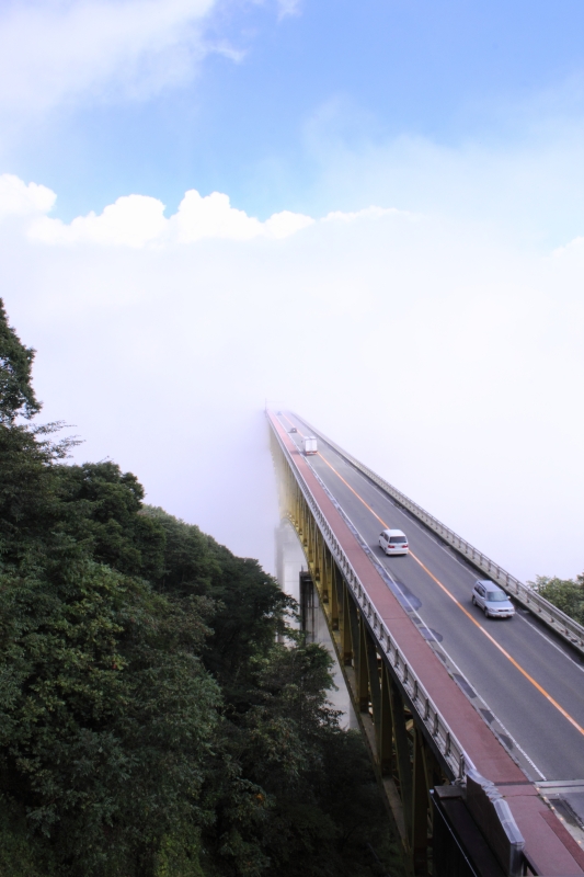 深い谷に架かった橋に、谷筋を霧が流れ下っていたわけです。